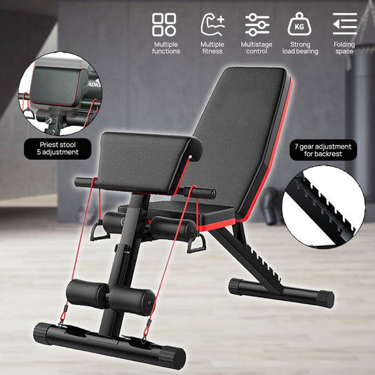 Versatile Features: In addition to its adjustable design, our weight bench may include features such as built-in leg rollers for leg exercises, detachable attachments for added versatility, and convenient storage options for weights and accessories, maximizing the effectiveness of your workout sessions.